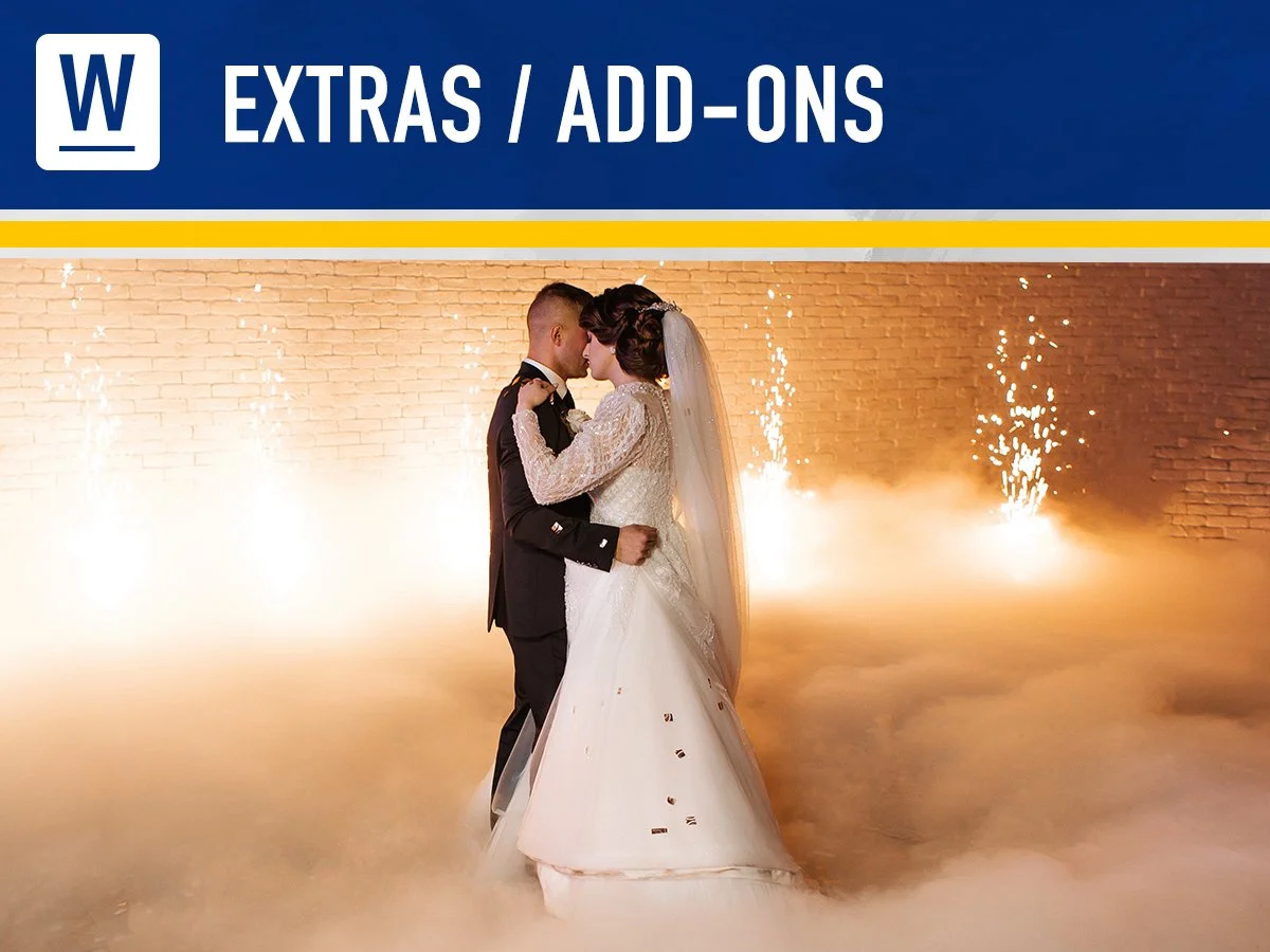 Add-ons available (uplighting, “dancing on the cloud,” and more)